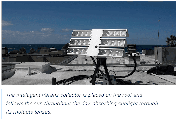 Parans is a Swedish company that was started in 2003 to provide sunlight in every room. What we do is lead natural sunlight deep into buildings far away from windows through fiber optic technology. We make sunlight an indoor experience when there is no possible access to the sky. Any building. Any floor. Any room.