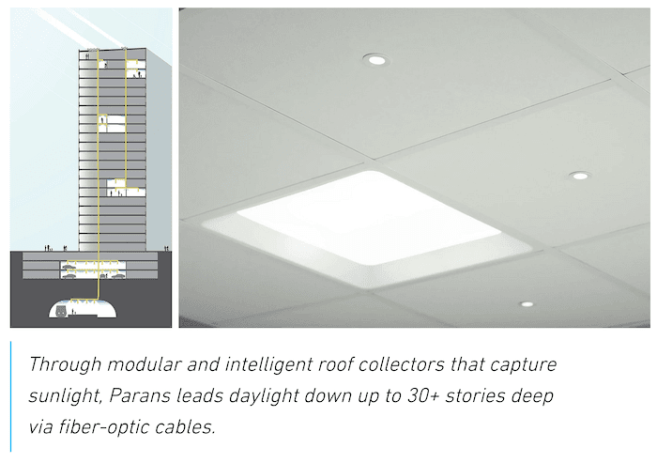 First and foremost, we are looking at the health benefits when we design anything. 90% of our time is spent indoors, regardless of where we live, so we want to make sure that we can have a positive effect on occupants’ alertness, their productivity, and their sleep patterns- unleashing all the positive benefits that come with proper exposure to full-spectrum sunlight. With Parans, they have an opportunity with our flexible and thin fiber-optic cables to lead and direct the sun exactly where they want it to be. It opens up more bold possibilities for how buildings and other spaces can be designed.
